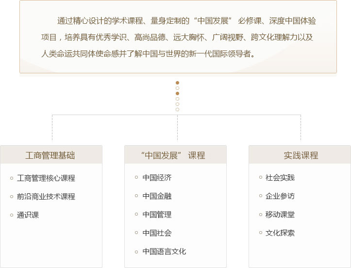 录取学生本科第二年按照项目培养方案在光华管理学院修读相关课程,第三年起进入“未来领导者”国际本科项目学习。